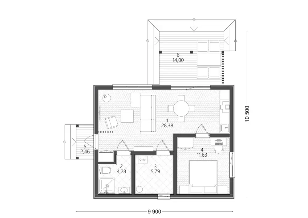 Дом выполнен в современном стиле и предназначен для небольшой семьи. Он идеально подойдет тем людям, которые ценят практичность и оптимизацию пространства. Необходимый и функциональный набор помещений приятно удивит своей гармоничностью и удобством перемещения внутри дома.